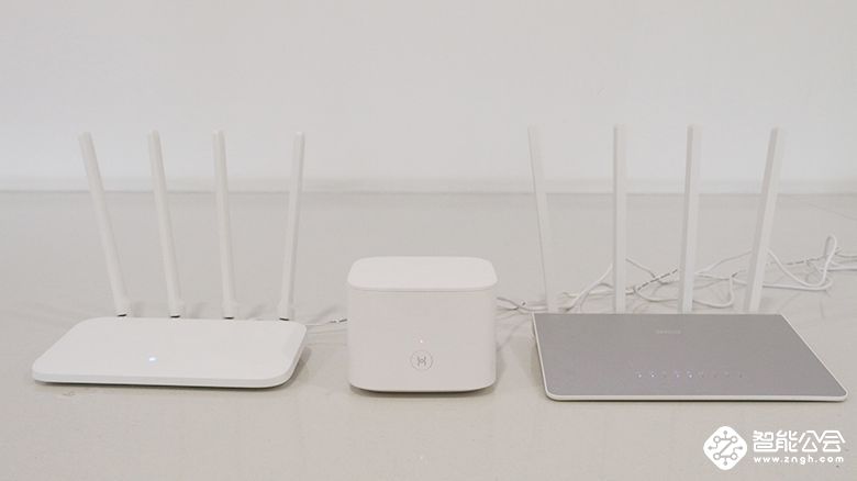 而小米路由器4C和360路由器P3则采用了传统的外置天线设计,由四根高增益天线组成,所以看起来这两款路由器在体积上不仅显得大,而且放置在家中哪里都很占地方,显得很突兀。