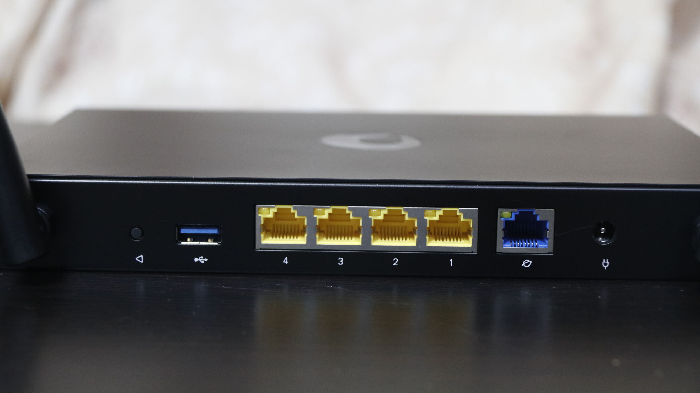 背部接口依次为重启按钮,USB 3.0接口,4个自适应100/1000Mbps LAN口,1个自适应100/1000Mbps WAN口和12V电源接口。蒲公英路由的USB接口除了我们最熟悉的局域网文件共享,还支持3G/4G USB适配器上网。也就说USB可以外接3G/4G USB适配器实现无线上网,