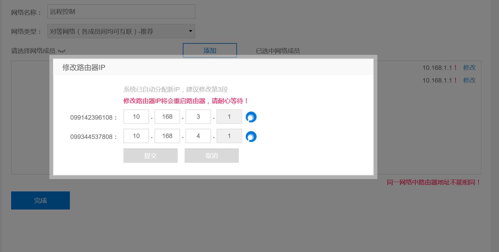 在蒲公英选项下方有“智能组网”选项,点击后弹出一个对话框,点击“立即创建网络”就开始智能组网。