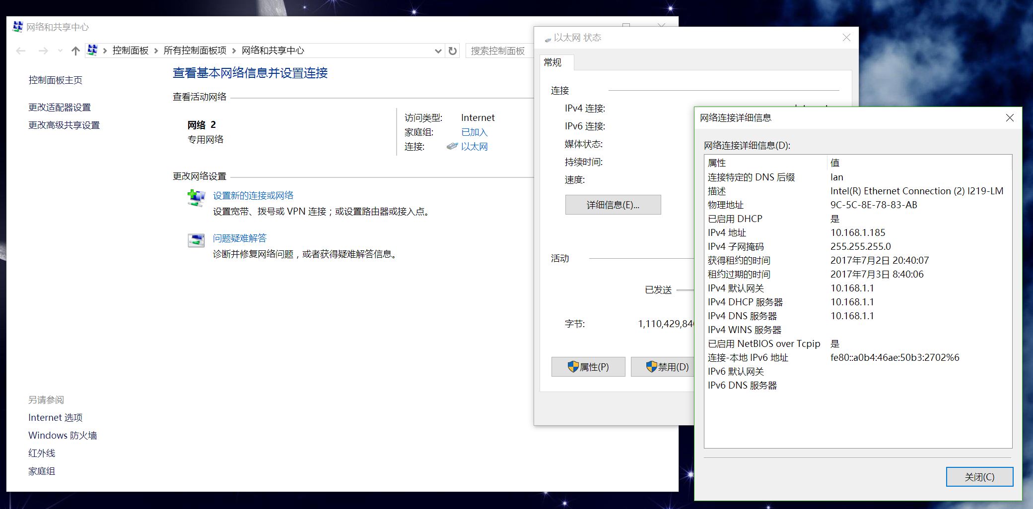 win10则在网络和共享中心,点击“以太网”,再点击“详细信息”,IPV4的地址就是主机IP地址。