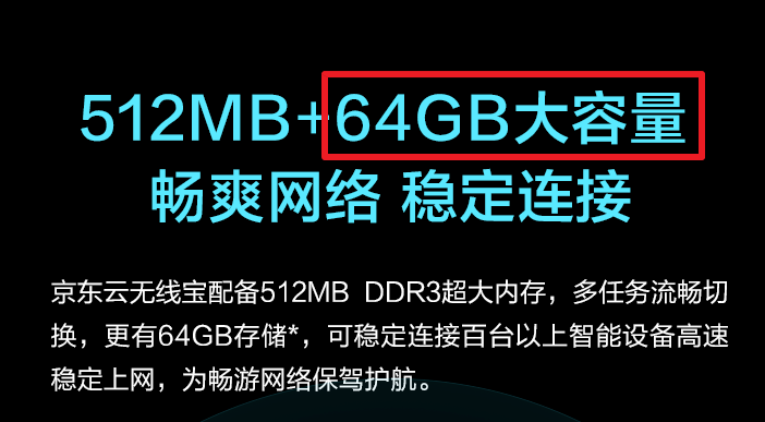 然后,京东云的这个路由器里面内置了一个 64 GB 的存储空间,其实就是相当于一个微型的存储服务器。