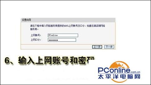 4、登陆后,您首先要设置ADSL虚拟拨号(PPPoE),输入你的ADSL用户名密码,这样路由器就能自动拨号上网,输入完成后直接下一步。