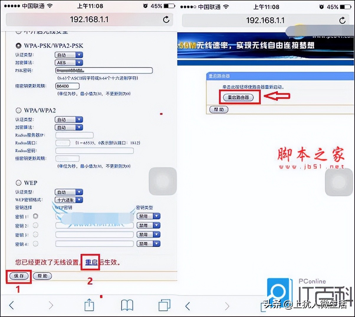 4、点击保存后,需要重启路由器新Wifi密码才会生效。我们可以点击底部的“重启”就行重启路由器,最后在确认重启界面,点击“重启路由器”就可以了。