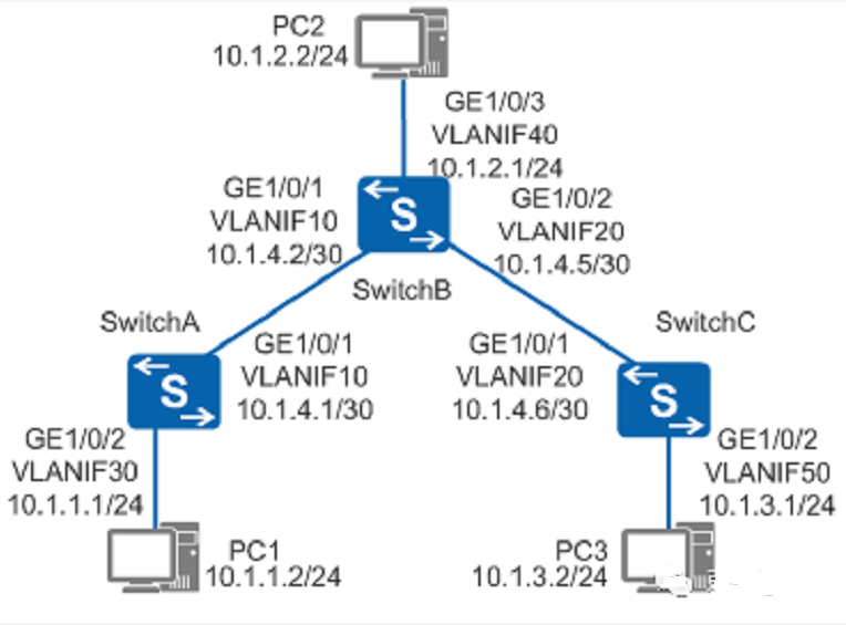[SwitchC-Vlanif10] ip address 10.1.4.6 30
