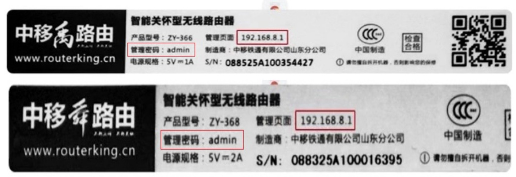 注:部分路由器管理密码在路由器背面标签上,如中移尧路由/中移舜路由/中移禹路由。