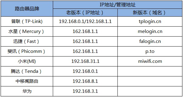 路由器IP地址一般为192.168.0.1或192.168.1.1,不同路由器IP地址略有不同,具体可在路由器背面查看,常见路由器IP地址如下: