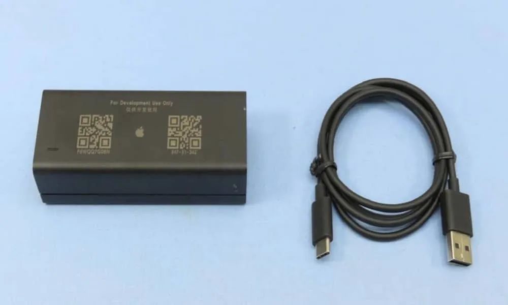 产品另一面印有苹果 logo,同时有「仅供开发使用」的字样以及一对二维码。
