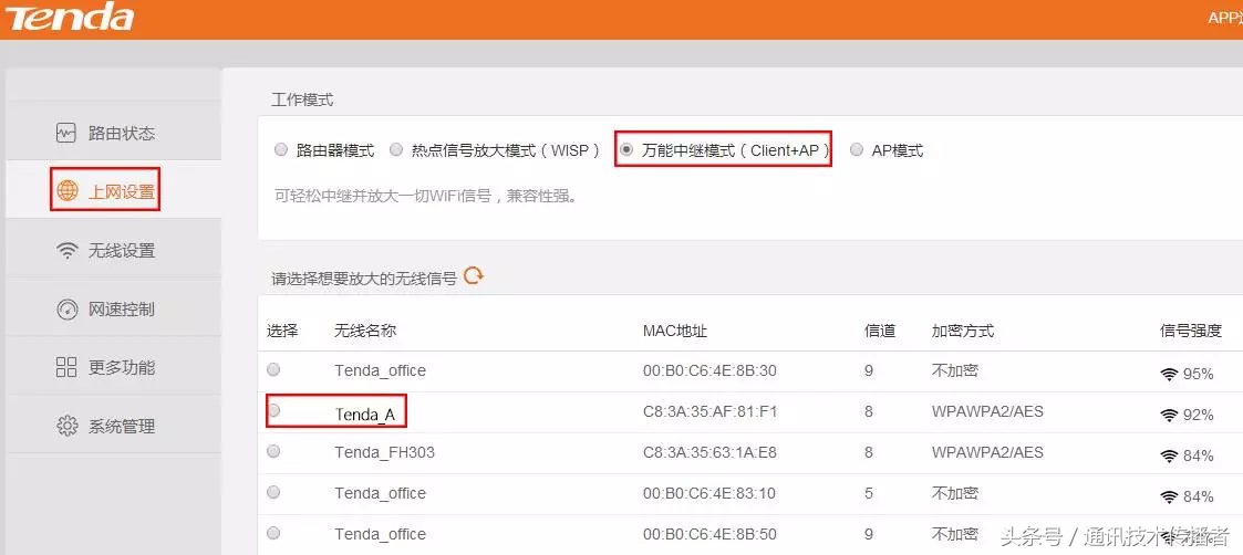 我们只需要知道主路由的WiFi名称和密码就可以了,假设主路由的WiFi名称为“Tenda_A”,WiFi密码为12345678000