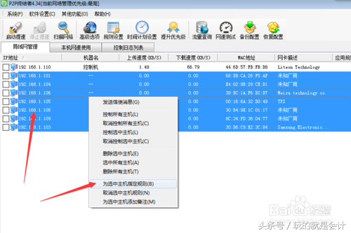 选择要限制的机器名右键选择“为选中主机限定规则”。