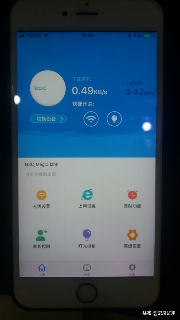 便捷APP管理,用手机扫描路由器背面二维码即可下载魔术家APP,并让手机无线网络连接H3C华三无线网,注册登录后即可对路由器进行不同的设置,简单三步即可搞定设置,一是设置管理密码,二是设置上网方式,三是设置WIFI密码和个性名称,这里感到比较人性化的一点就是路由器的登录密码和你设置的无线密码自动同步,即你只要用WIFI密码登录APP就可以了,如今智能设备较多,加上银行卡会员卡之类的密码,一个人就只记密码就头大,这样的设计也是华三的可圈之处,这样的设计在不久的将来必会成为路由器的设计主流。