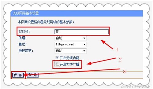 在“基本设置”页面中更改一下SSID名称,取消勾选“开启SSID广播”。这样手机电脑上就不会显示SSID名称。蹭网者不知道SSID名称就无法蹭网了。