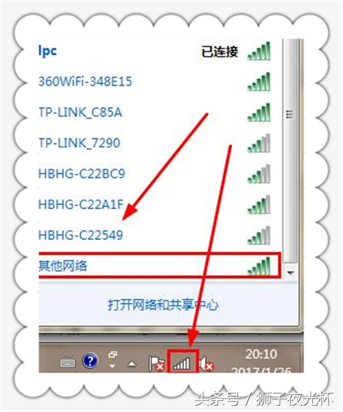 在电脑屏幕右下角的任务栏上,点击“无线网络”,再在弹出的菜单中点击“其它网络”再点击“连接”