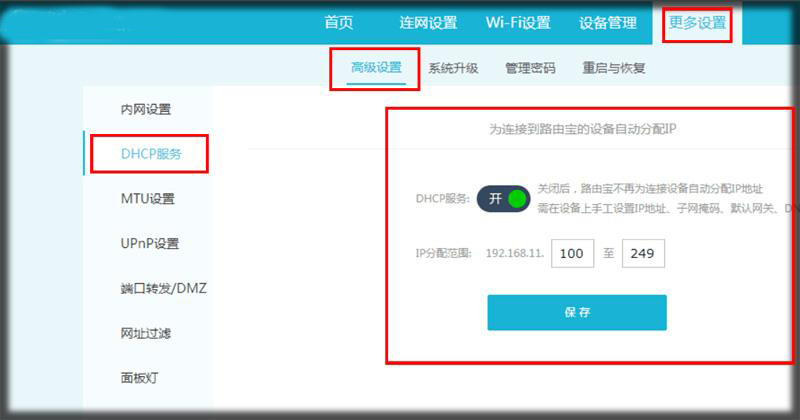 4.以上设置好后,重启路由器,(可以按重启键,也可以重插电源)由刚才设置的LAN设置ip从电脑浏览器处输入进入。比如我设置为192.168.50.1,在IE浏览器上输入192.168.50.1,输入管理员登入密码(上面设置的登入密码),进入该路由器设置页面,点击DHCP服务器,根据自己路由选择关掉或者打开。