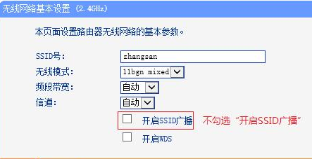 2、隐藏ssid。登陆无线路由器管理页面,把“广播ssid”勾去掉。