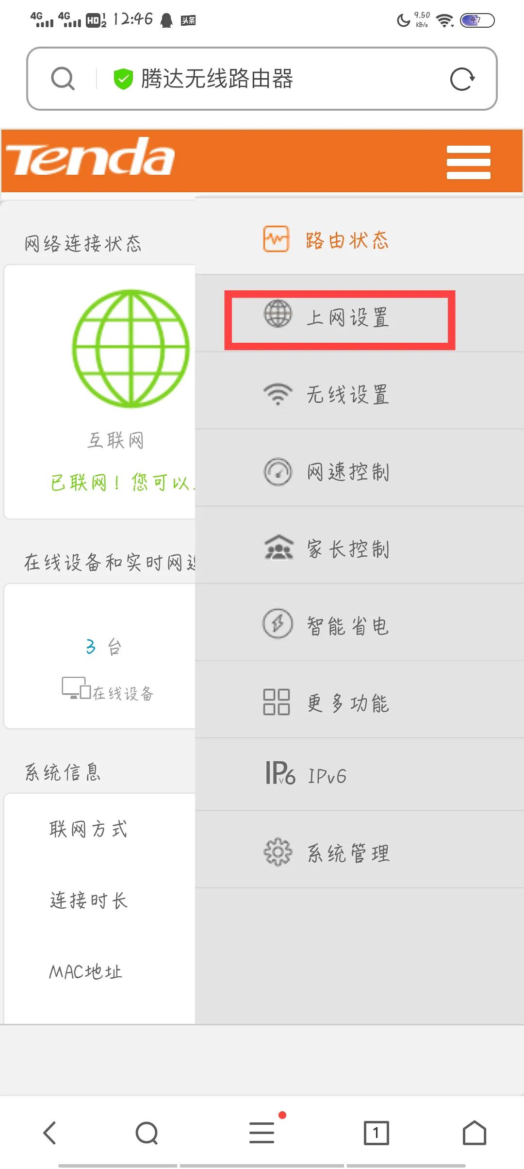 但是还没完,之后又是右上角三个杠,选择上网设置: