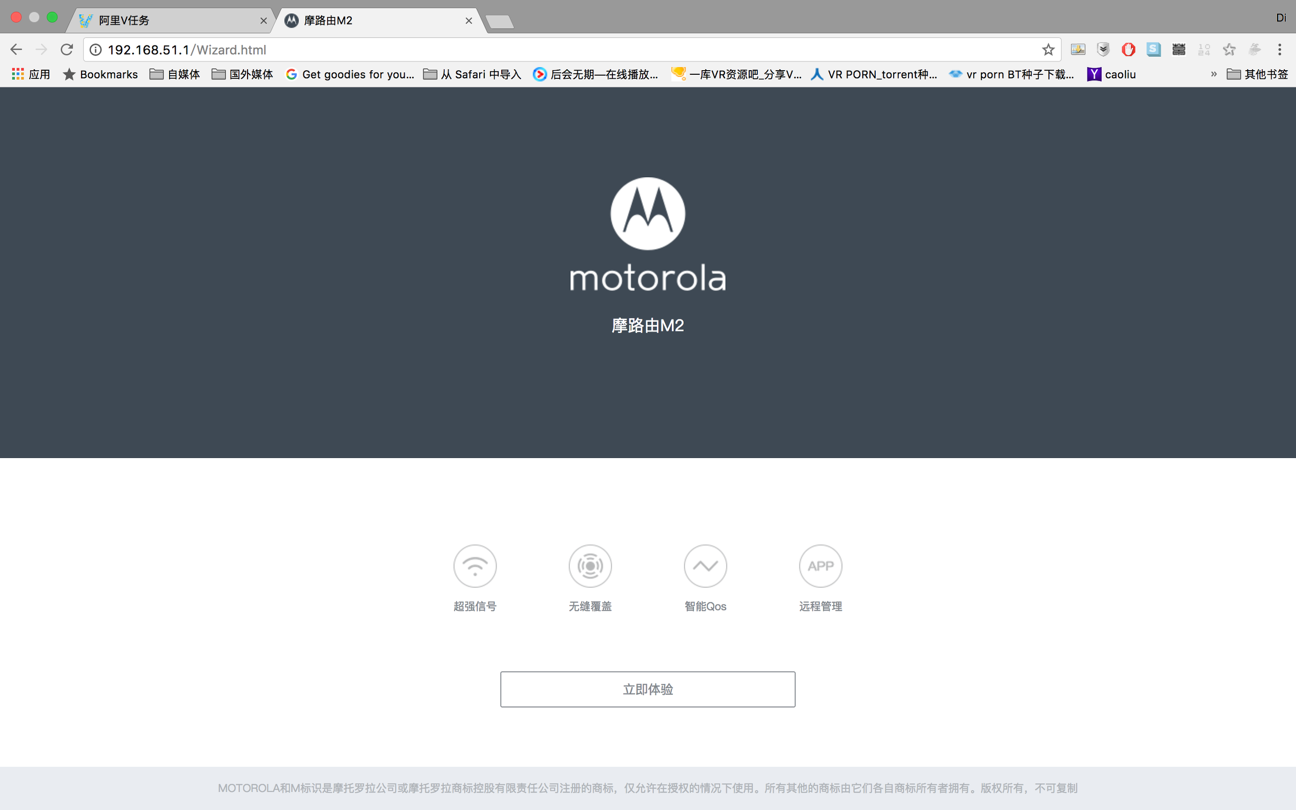 摩路由M2的包装很简单,上面是路由器的渲染图,左上角是摩托罗拉的LOGO。