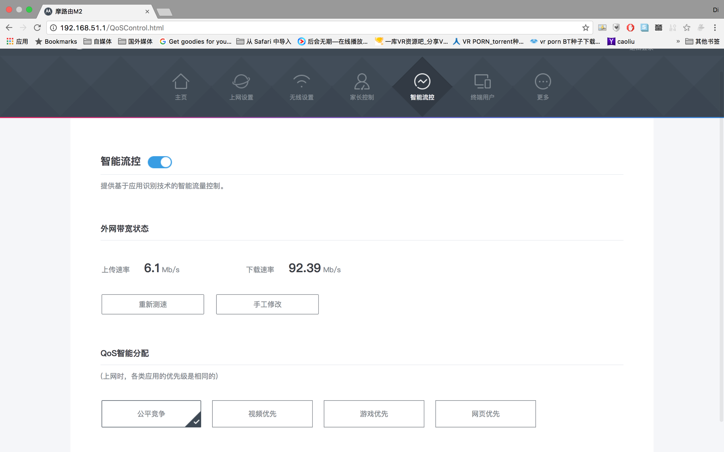 摩路由M2为了照顾大家庭,还新增了Qos功能,中文名叫「智能流控」。简单解释一下: