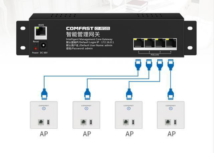 用户可以选择AC+AP的组网方式,每1-2个房间分布1台面板AP,确保每个角落都有WiFi信号,然后每台AP由AC统一控制。此种方案非常适合新房设计时一步到位,简介美观大方也节省空间。
