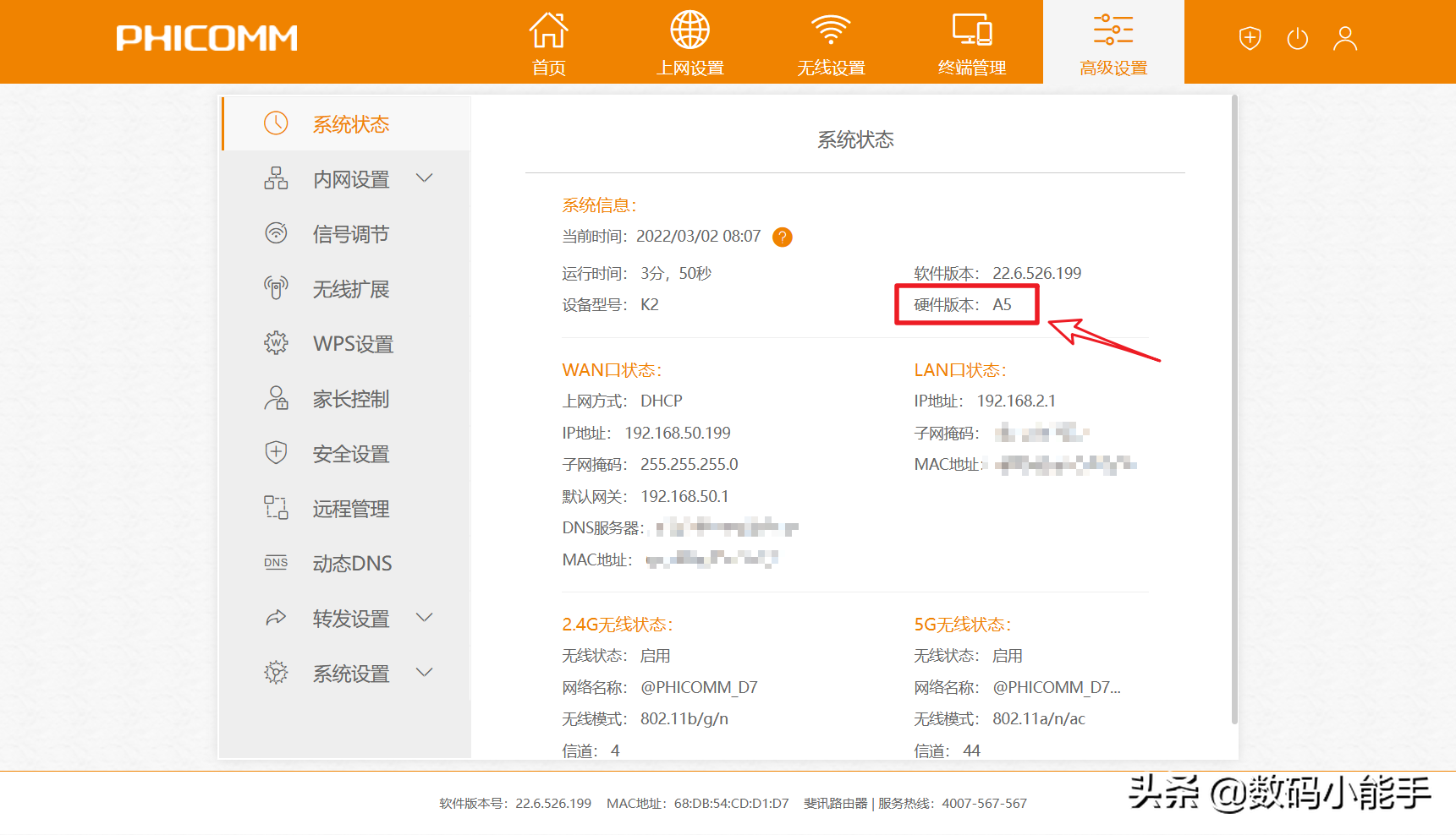 方法二:登录路由器的管理界面,选择高级设置-设备信息里面的硬件版本也可以查看版本信息。