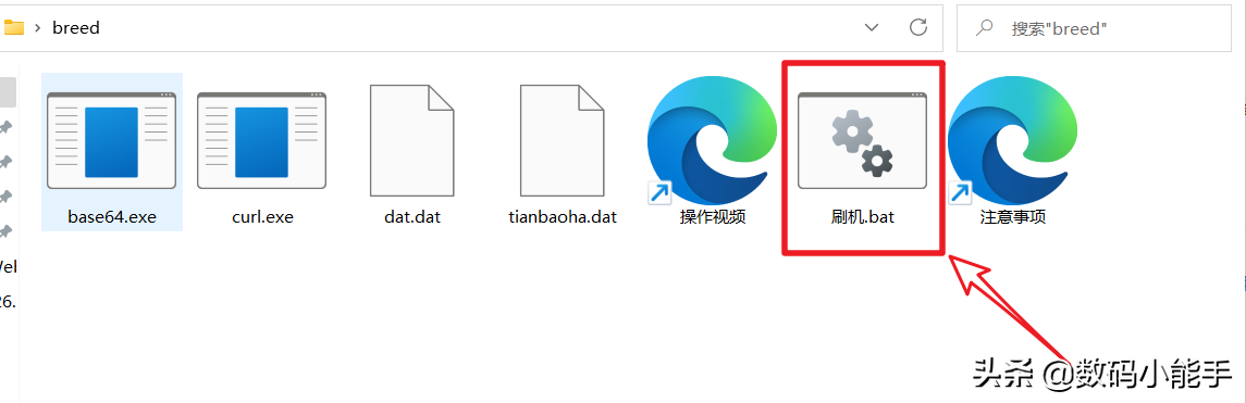 直接双击刷入breed的工具中的“刷机.bat”脚本程序。