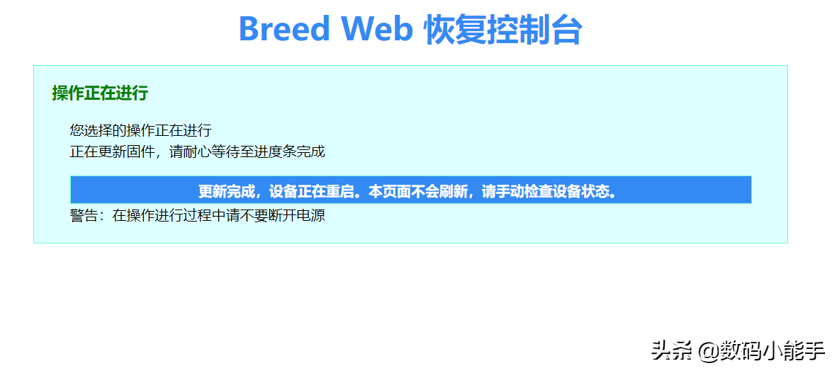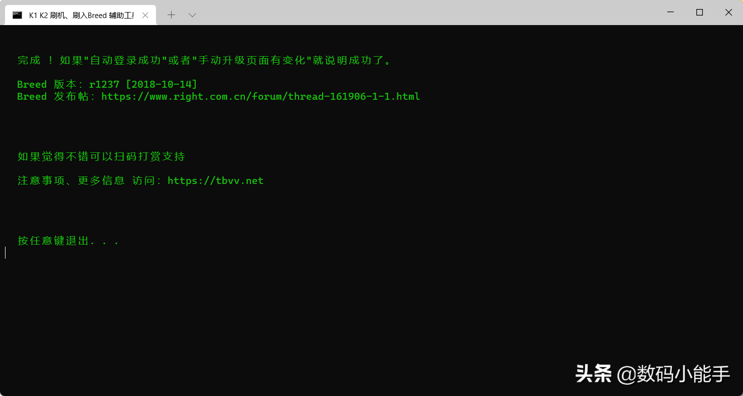剩下的就交给程序自动完成,当出现上图中的界面,就说明breed基本上算是刷入完成了,就是这么简单!