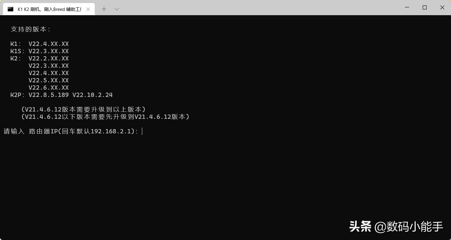 然后出现上图所示。按照程序提示输入路由器IP地址。