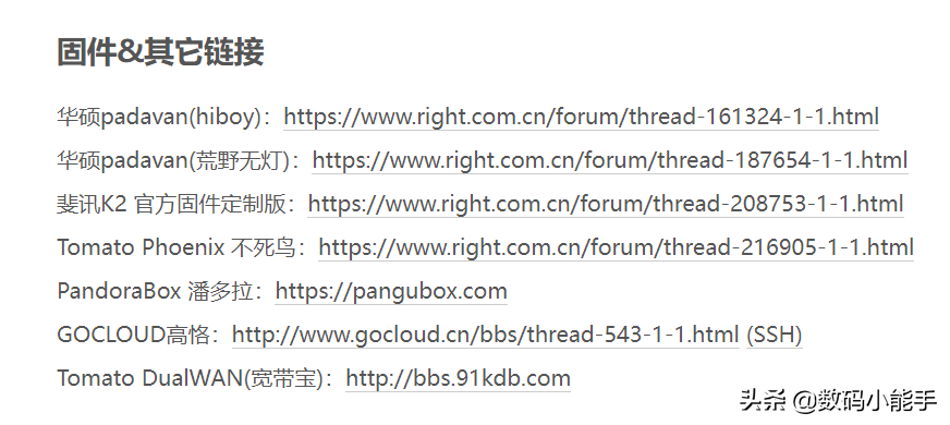其实我上面给出的原作者帖子里面就有很多第三方的固件下载连接,需要的直接过去下载好了。根据我个人的经验,如果求稳定,华硕padavan固件和高恪固件非常不错!