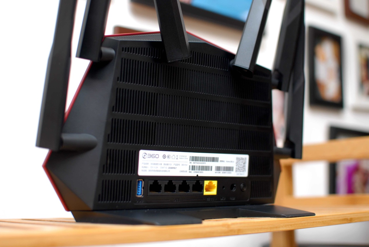 其实单看渲染图的时候,个人觉得360家庭防火墙路由器V5X并没有感觉太特别,但当见到实物的那一刻,这造型设计还是非常有个性的,类似于铠甲的外观配上六根天线那真的是相当威武。