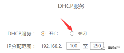 4.连接WiFi 进入浏览器,输入路由器管理地址,找到DHCP功能,把其根本掉,(因为桥接是为了扩大WiFi覆盖范围,所以IP地址由主路由器分配,所以把副路由器DHCP关掉)。