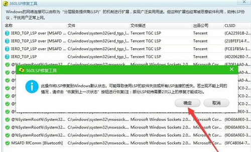 在打开的“ 360LSP修复”工具界面中,直接单击“立即修复”按钮,然后从弹出窗口中单击“确定”按钮以完成网络LSP修复操作,可以初步解决网络延迟高的问题。