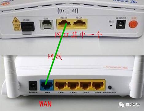 1.连接方法光纤猫的lan口 连接路由器wan口,如下图: