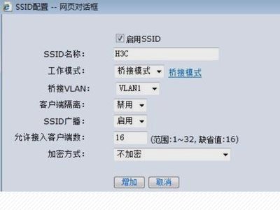 4、设置SSID及工作模式和加密模式,选择为桥接模式,选择不加密。
